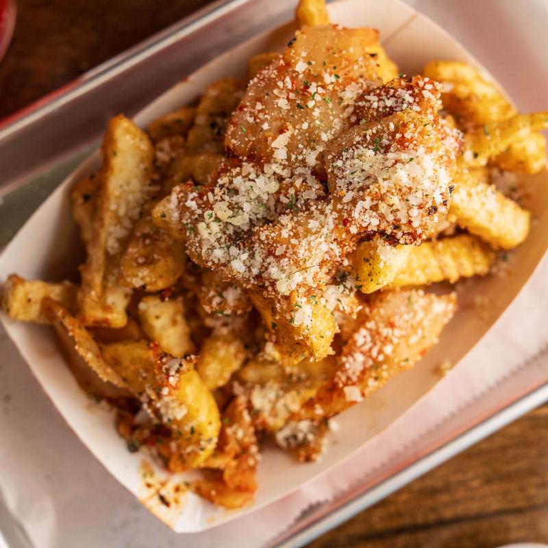 Crinkle cut, garlic, parsley, kim chi, romano, teriyaki